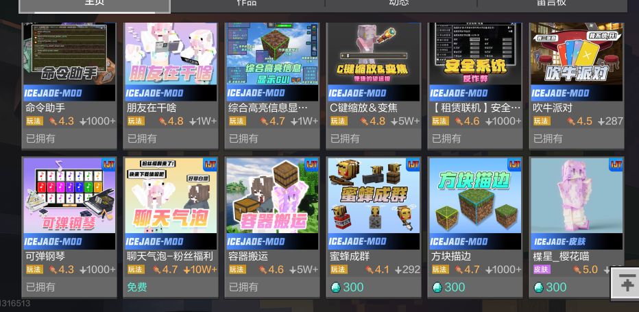 在网易《我的世界》中拥有 100+ 作品,涵盖模组、地图、资源包等多种类型,同时开发了频道专属的冰玉机器人
